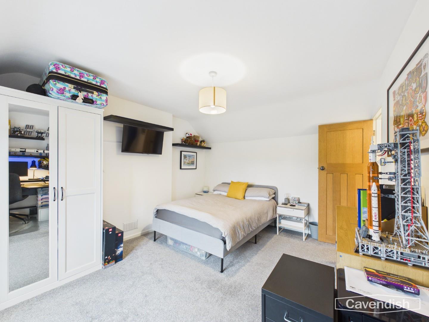 A good-sized double bedroom with carpeted flooring, radiator and double-glazed window. A useful alcove area is currently utilised as a home office or study space with shelving.