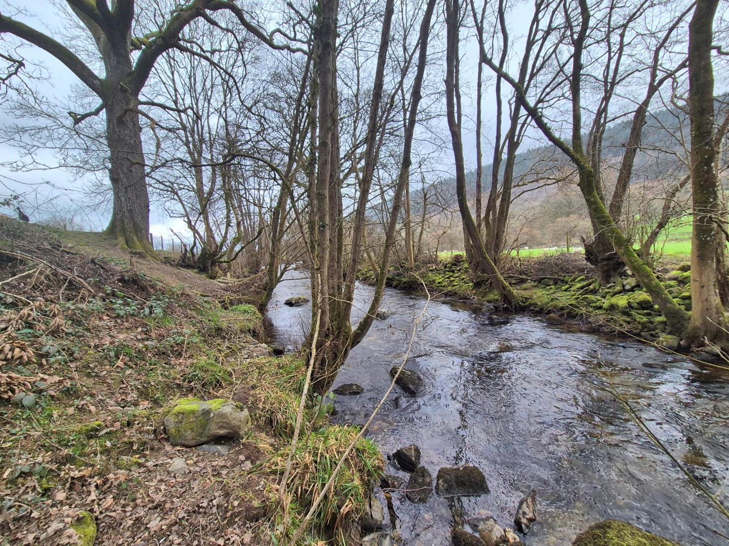 To the opposite side of the lane is a parcel of land which benefits from extensive frontage and fishing rights on the river Ceidiog. It provides an ideal enclosure for keeping small livestock and there are currently a variety of hens and ducks.