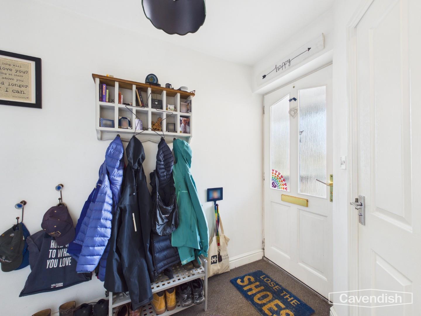Accessed via a wooden door with obscured glazing, the entrance hallway is carpeted and provides a warm welcome into the home. Stairs with a white-painted handrail lead to the first floor, with a ceiling light pendant and access to the ground floor accommodation.