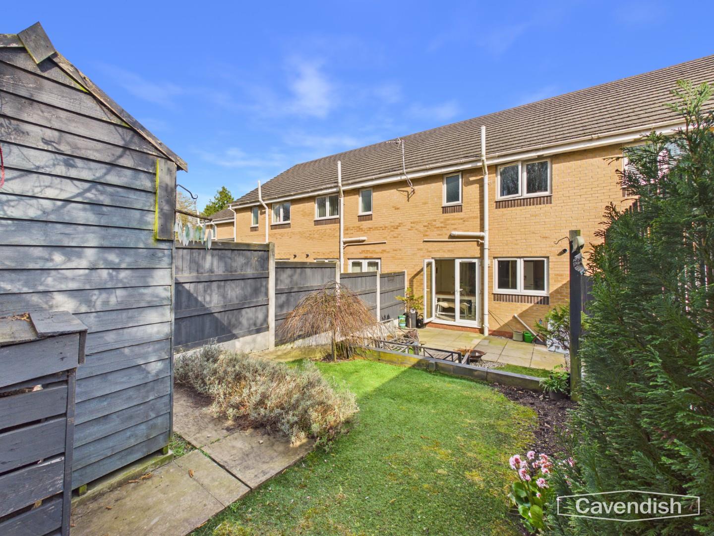 The rear garden has been designed for low maintenance, featuring a paved patio area ideal for outdoor seating, leading onto an artificial lawn. A stepped pathway leads to the rear of the garden where A garden sheds provide useful storage. The garden also includes planted borders, creating an attractive and practical outdoor space.